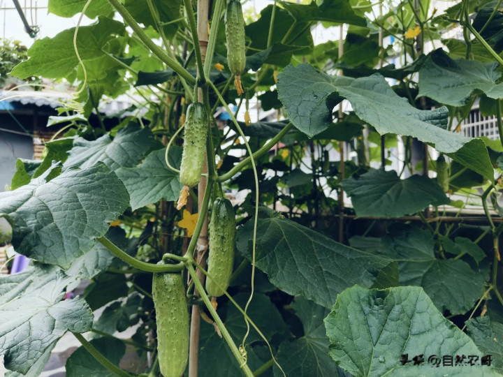盯着黄瓜藤的嫩黄卷须,一寸寸缠绕竹竿。